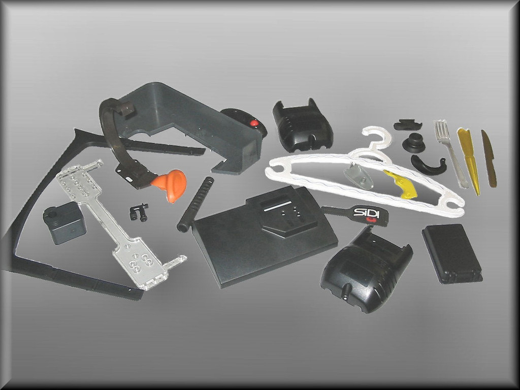 Alcune immagini di di particolari ottenuti dagli stampi da noi realizzati e di diversa tipologia di materie plastiche es:PP, ABS,PC, PS, PC+ABS, PA615%,PET, PVC